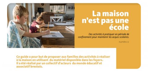 A Brest un collectif de quelques personnes proches du réseau prof@brest ayant en souci la prise en comptes des familles éloignées du numérique, en période de confinement, a réalisé ce guide "la maison n’est pas l’école", guide pour les familles déconnectées avec le soutien du Développement Social Urbain et du Réseau d’éducation prioritaire pour l’impression et la diffusion.