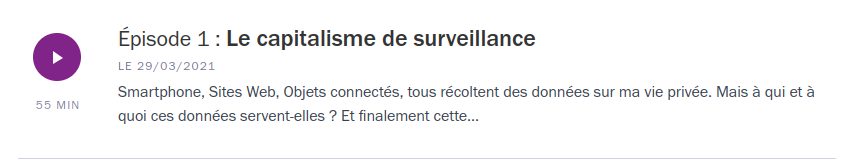 Épisode 1 : Le capitalisme de surveillance – Cliquez l’image pour accéder à la page et écouter l’épisode sur le site de France Culture.