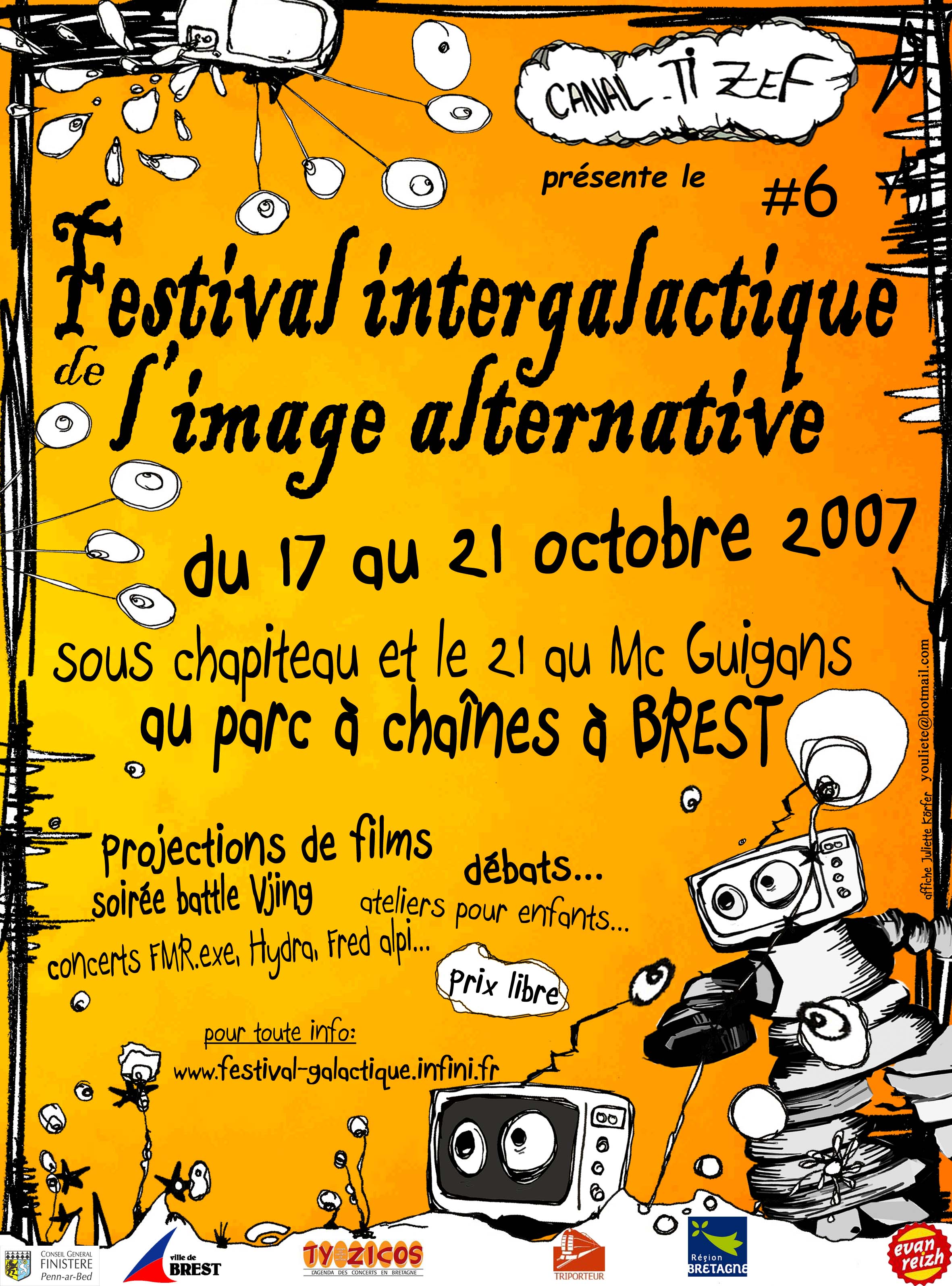 5. Le festival intergalactique cherche à être un temps d’échanges entre les gens, entre les genres. Ces tempêtes de ciboulot aboutissant à des créations comme le ciné concert avec Sharlubêr, comme la sortie du DVDzine avec les gens de Regarde à vue ou bien à la coproduction d’une soirée Vjing avec l’association Triporteur avec un spectacle de cirque de Balle à fond qui se glisse au milieu de tout celà.